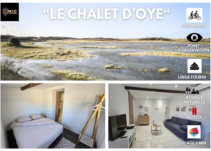 Le Chalet D'Oye - Bord De Mer-Reserve Naturelle- Oye Plage 아파트는 Espace Tourville에서 차로 15분 이내의 거리에 있는 해변 숙소입니다. 이 숙소에는 1개의 침실, 1개의 욕실과 부엌이 마련되어 있습니다.